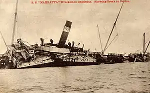 SS Mahratta was a steamship owned by Brocklebank Line which was launched in 1891 and ran aground on the Goodwin Sands in 1909. One member of the crew committed suicide.[1]