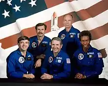 This mission had a crew of five, with three mission specialists. It was the second mission (after STS-7) to fly with a crew of five, the largest carried by a single spacecraft up to that date.[1] The crew was historically notable for the participation of Guion "Guy" Bluford, who became the first African-American to fly in space.[2]