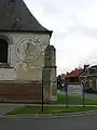 - The 15th-century church, which is dedicated to three saints (Fuscien, Victoric and Gentien), whose joint tomb is a feature inside the building. Around 1900 the tower was topped with a spire.[2] The church also houses a 12th-century font and sculptures from the 13th and 18th centuries, originally from the abbey at Selincourt, now a part of the commune of Hornoy-le-Bourg.