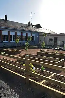 The construction of the school cafeteria, which opened on 13 October 2007, follows the concepts of HQE (Haute Qualité Environnementale (High Environmental Quality)) with a frame and wood cladding, solar panels for production of hot water, tanks for rainwater collection, and a choice of materials and energy used conforming with the logic of sustainable development.