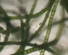 The formation begins as tidal flats gain elevation relative to sea level by sediment accretion, and subsequently the rate and duration of tidal flooding decreases so that vegetation can colonize on the exposed surface.[10] The arrival of propagules of pioneer species such as seeds or rhizome portions are combined with the development of suitable conditions for their germination and establishment in the process of colonisation.[11] When rivers and streams arrive at the low gradient of the tidal flats, the discharge rate reduces and suspended sediment settles onto the tidal flat surface, helped by the backwater effect of the rising tide.[4] Mats of filamentous blue-green algae can fix silt and clay sized sediment particles to their sticky sheaths on contact[12] which can also increase the erosion resistance of the sediments.[13] This assists the process of sediment accretion to allow colonising species (e.g., Salicornia spp.) to grow. These species retain sediment washed in from the rising tide around their stems and leaves and form low muddy mounds which eventually coalesce to form depositional terraces, whose upward growth is aided by a sub-surface root network which binds the sediment.[14] Once vegetation is established on depositional terraces further sediment trapping and accretion can allow rapid upward growth of the marsh surface such that there is an associated rapid decrease in the depth and duration of tidal flooding. As a result, competitive species that prefer higher elevations relative to sea level can inhabit the area and often a succession of plant communities develops.[10]