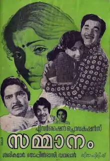 Sammanam (transl. Gift) is a 1975 Indian Malayalam-language romantic drama film, directed by J. Sasikumar and produced by Thiruppathi Chettiyar. The film stars Prem Nazir, Madhu, Jayabharathi and Sujatha in the lead roles.[1][2] It is a remake of the 1959 Tamil film Kalyana Parisu.[3]