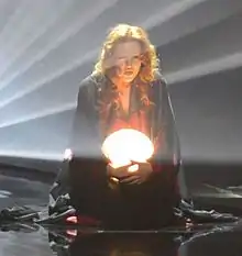 Monetta performed "Crisalide (Vola)" in the second semi-final on 16 May 2013, appearing second out of the 17 countries.[21] Her performance was similar to that of the music video, with her being seen holding a light orb meant to represent a chrysalis which transforms into a butterfly.[21][24] The choreography was arranged by Fabrizio Raggi, who served as art director for the year's participation.[25]
