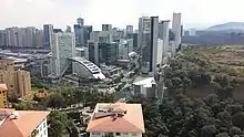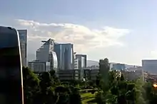 Santa Fe is one of Mexico City's major business districts, located in the west part of the city in the alcaldías (boroughs) of Cuajimalpa and Álvaro Obregón. The Paseo de la Reforma avenue and Constituyentes avenue are the primary means of access to the district from the central part of Mexico City. Santa Fe consists mainly of highrise buildings surrounding a large shopping mall, Centro Santa Fe, which is currently the largest mall in Latin America. The district also includes a residential area and three university campuses, among other facilities.The Toluca–Mexico City commuter rail,[1] due to open in 2020, will also improve mobility and development in the district.