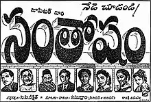 Santosham (transl. Happiness) is a 1955 Telugu-language drama film, produced by M. Somasundaram under the Jupiter Pictures Ltd. banner[3] and directed by C. P. Deekshith.[4] It stars N. T. Rama Rao, Anjali Devi, Jamuna [5] and music composed by Viswanathan–Ramamoorthy.[6] The film is a remake of the Tamil movie Velaikkaari (1949) and it was simultaneously made as the Hindi movie Naya Aadmi (1956).[7]