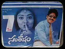 Santosham (English translation: Happiness) is a Telugu comedy drama film produced by Dr. K. L. Narayana under the Sri Durga Arts banner, directed by Dasaradh. The film stars Nagarjuna Akkineni, Prabhu Deva, newcomer Gracy Singh and Shriya Saran. The music was composed by R. P. Patnaik. The movie was well received by critics and successful at the box office. It was dubbed in Tamil as Santhosha Vanille and was also dubbed in Hindi as Pehli Naazar ka Pehla Pyaar. The film was remade in Bengali as Bandhan, starring Jeet and Koyel and in Kannada as Ugadi, with V. Ravichandran.
