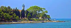 The 19th century Savudrija Lighthouse is a distinctive local landmark; it is the oldest in Croatia, and the oldest operational light of the Adriatic. The 29-metre-high (95 ft) lighthouse is also the most northerly in Croatia.[2] Three kinds of wind meet here, so the area is popular with windsurfers.