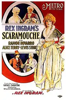 Scaramouche (1923) is a silent swashbuckler film based on the 1921 novel Scaramouche by Rafael Sabatini, directed by Rex Ingram, released by Metro Pictures, and starring Ramón Novarro, Alice Terry, Lewis Stone, and Lloyd Ingraham.