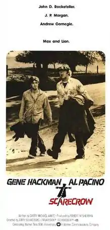 Scarecrow is a 1973 American road movie directed by Jerry Schatzberg, and starring Gene Hackman and Al Pacino. The story revolves around the relationship between two men who travel from California, aiming to start a business in Pittsburgh.