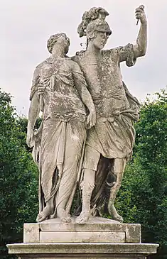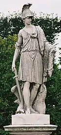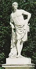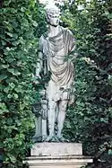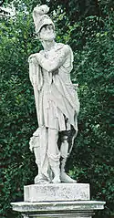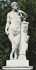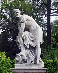 | 32 | Gaius Mucius Scaevola | Johann Martin Fischer | Gaius Mucius Scaevola was a legendary Roman youth known for his bravery. During the siege of Rome by King Lars Porsena of Clusium at the end of the sixth century BC, Scaevola entered the enemy's camp and attempted to kill the king. When he was taken prisoner and threatened with death, Scaevola placed his right hand into a fire to show his indifference to death. Porsena was so impressed he freed the brave youth, who took on the cognomen Scaevola meaning "left-handed".[39] | ![]() Gaius Mucius Scaevola |