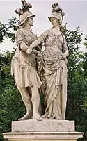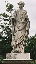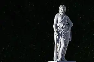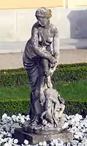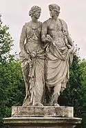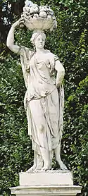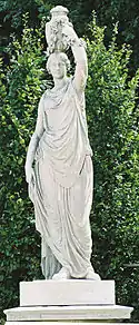 | 4 | Ceres and Dionysus | Joachim Günther | Ceres was the goddess of agriculture, marriage, and death, representing the generative power of nature.[7] She is shown with Dionysus, the god of the grape harvest, winemaking, and wine, and of ecstasy. He was the son of Zeus and Semele.[8] | ![]() Ceres and Dionysus |