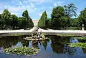 The Neptune Fountain at the foot of the Gloriette hill was designed to be the crowning monument of the Great Parterre.[40] Commissioned by Empress Maria Theresa, work on the fountain began in 1776 and was completed within four years, just prior to the death of the empress.[40] The overall design was done by Johann Ferdinand Hetzendorf von Hohenberg; the marble sculptural group was executed by Wilhelm Beyer.[40]