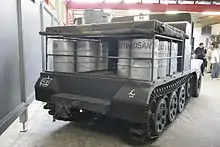 The Sd.Kfz. 11/2 was a chemical decontamination vehicle fitted with a 70 kg (150 lb) capacity spreader and space for eight barrels of decontamination chemicals. This left room for only three crewmen. The barrels were stowed on platforms over the tracks with foldable outer rails.[8]
