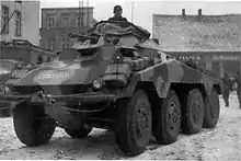 The Sd.Kfz. 234 (Sonderkraftfahrzeug 234, Special Purpose Vehicle 234), was a family of armoured cars designed and built in Germany during World War II. The vehicles were lightly armoured, armed with a 20, 50 or 75 mm main gun, and powered by a Tatra V12 diesel engine.[3] The Sd.Kfz. 234 broadly resembles the appearance of Sd.Kfz. 231 (8 rad).[2]