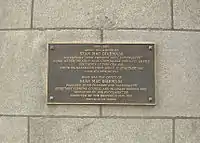 Seán MacDermott Street (formerly Gloucester Street) in Dublin is named in his honour. So too is Sligo Mac Diarmada railway station in Sligo, and Páirc Seán Mac Diarmada, the Gaelic Athletic Association stadium in Carrick-on-Shannon. Sean MacDermott tower in Ballymun, demolished in 2005, was also named after him. In his hometown of Kiltyclogher a statue inscribed with his final written words – see above – was erected in the village centre, his childhood home has become a National Monument.[18] [19] The building which holds the national bus station and the Department of Social Protection is known as Áras Mhic Dhiarmada.[20]
