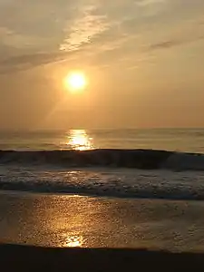 In the early 1840s, the area of present-day Sea Bright was a fishing community of simple shacks near the beach dunes; Ocean House, the area's first hotel, opened in 1842, featuring access to fishing and sea bathing.[26][27] The area was called "Nauvoo", a Native American word, meaning "bright sea".[28] An alternative explanation, which the borough credits as the source,[21] is that the name is derived from the Hebrew language meaning "pleasant place," which was the same name that Mormon leader Joseph Smith gave to Nauvoo, the Illinois town he founded in 1839. Smith is said to have visited Monmouth County during a missionary journey in 1840.[29][30][28]