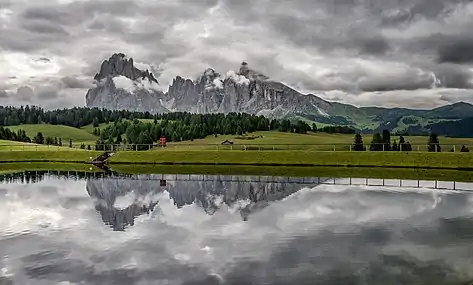 ![]() Seiser Alm with the mountains of Langkofel Group in the background. | |