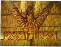 Sennit is mentioned in Robert Gibbings book Over the Reefs (1948).[3] He refers to its use in Samoa in 1946, where he was able to observe its being made on many occasions. He notes that its crafting was a constant occupation in Samoan villages, because so much of the material was required. A significant quote from the book, made by a village chief to Gibbings, emphasises the importance of sennit in Samoan culture: "In your country," said a chief to me, "only a few men can make nails, but in Samoa, everyone can make nails" (p. 118). He was referring to the sennit that is used to bind the structures or huts in which they lived. Sennit had a variety of other uses, including in shark fishing, where it was used as a noose that was placed over the shark's head as it came alongside the canoe.