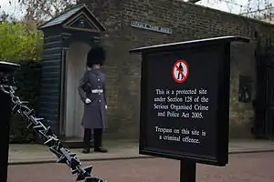 The Serious Organized Crime and Police Act 2005 (c.15) (often abbreviated to SOCPA or SOCAP) is an Act of the Parliament of the United Kingdom aimed primarily at creating the Serious Organised Crime Agency. It also significantly extended and simplified the powers of arrest of a constable and introduced restrictions on protests in the vicinity of the Palace of Westminster. It was introduced into the House of Commons on 24 November 2004 and was passed by Parliament and given Royal Assent on 7 April 2005.[3]