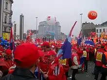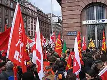 From 14 to 16 February 2006 a plenary session of the European Parliament carried out its first reading of the Directive in Strasbourg.[2][3] On 16 February 2006 MEPs (Members of the European Parliament) voted 391–213 in favour of a proposed revision to the Directive,[4] although it had already been "watered down" from the original version read to the European Parliament on 14 February, so much so that Socialist MEP Evelyne Gebhardt said that the Directive had been "turned upside down," a claim contested by labour organisations. The majority of members of the two largest groupings in the Parliament, the conservative European People's Party (EPP) and the centre-left Party of European Socialists (PES) voted in favour of the revised draft. The Party of the European Left, the European Green Party and the French Socialist Party voted against the new revision. Meanwhile, about 50,000 people demonstrated against the "country of origin principle" in Strasbourg.
