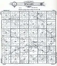Organization of Seward Township was approved by the Nobles County Board on September 28, 1872. The first township meeting was held on October 30, 1872, and the name Seward Township was selected at this first meeting in honor of U.S. Secretary of State William H. Seward who died just twenty days earlier on October 10, 1872. Seward was popular among Civil War veterans, many of whom settled in this township.[3] William Seward is generally known today for his purchase of Alaska - "Seward's Folly" - in 1867.