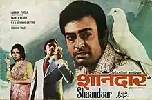Shaandaar (transl.Resplendent) is a 1974 Indian Hindi-language drama film directed by Krishnan–Panju. The film stars Sanjeev Kumar, Sharmila Tagore and Vinod Mehra. A remake of the 1971 Kannada film Kasturi Nivasa,[2] it focuses on Rajan, who incurs losses as Chander, a man who he helped, prospers. The film was released on 22 September 1974.