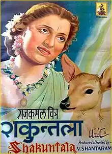 Shakuntala is a 1943 costume drama film based on the Mahabharat episode of Shakuntala, directed by V. Shantaram.[1] It was the first film made under the newly formed Rajkamal Kalamandir banner that Shantaram had started. It was the first film to be shown commercially in US.[2] Adapted from the Shakuntala of Kalidas the screenplay was by Diwan Sharar. Music was composed by Vasant Desai with lyrics by Diwan Sharar and Ratan Piya.[3] The cinematatography was by V. Avadhoot and the film starred Kumar Ganesh, Jayashree, Chandra Mohan, Ameena, Shantaram, Zohra and Nana Palsikar.[4]