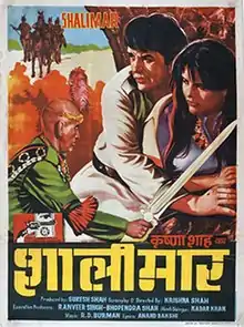 Shalimar (Hindi : शालीमार) is a 1978 Bollywood film, written and directed by Krishna Shah.[2] The movie starred Dharmendra,[3] Zeenat Aman, Shammi Kapoor, Prem Nath and Aruna Irani. English actor Rex Harrison and American actors John Saxon and Sylvia Miles[4] appear in supporting roles in their first and only Bollywood film. Jayamalini does a dance number in the film. This was the last time that Mohammed Rafi's voice was picturized on Shammi Kapoor.[5] Its English version is known as Raiders of the Sacred Stone. Rex Harrison's voice was dubbed by Kader Khan. The plot is inspired by the novel The Vulture is a Patient Bird by James Hadley Chase.