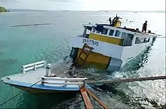 ![]() MV Acita 03 being evacuated by locals after it had capsized off Baubau . | |