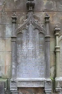 Alison died at Possil House, Glasgow, at the age of 74, and was interred in Dean Cemetery, Edinburgh.[13] He enjoyed great popularity in Glasgow. His funeral was attended by a crowd of from 100,000 to 150,000 people.[14] His grave lies amid the "Lord's Row" against the western wall, and is modest in comparison to most in this section.