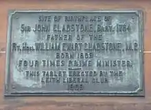 A plaque was erected in 1909 at the corner of Great Junction Street and King Street in Leith commemorating the site of the birthplace of John Gladstone.