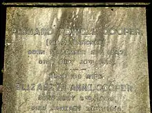 Richard Powell Cooper was buried in the Cooper family grave in the Cemetery of St Peter's Church on Rectory Lane, Berkhamsted.[4]