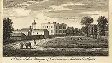 The Wolstenholme family acquired wealth and social position in Middlesex through service in the customs office. The second baronet built Minchington Hall in Southgate, Middlesex, after 1664. In 1672 he was assessed to taxation on 35 hearths, the greatest amount in the parish.[2] In 1675 he settled £2,000 PA in lands on his son the future 3rd baronet when he married into the powerful Raynton family. In 1690, the 3rd baronet, by then a member of Parliament for Middlesex petitioned Parliament for a bill to sell several properties to pay the debts of his father, who it was claimed, was almost bankrupt.[3]