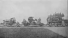 Barrel, body and crew towed by an M 12 tractor, circa. 1914
