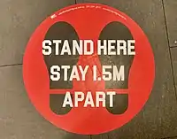 Social distancing, or physical distancing,[1][2][3] is a set of non-pharmaceutical interventions or measures taken to prevent the spread of a contagious disease by maintaining a physical distance between people and reducing the number of times people come into close contact with each other.[1][4] It involves keeping a distance of six feet or two meters from others and avoiding gathering together in large groups.[5][6]