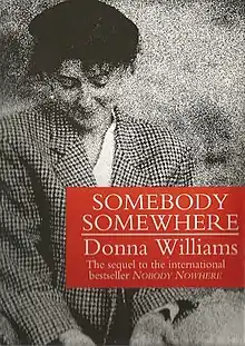 Somebody Somewhere is a book written by the autistic author, songwriter, screenwriter and artist Donna Williams.[1] It is the 1994 sequel to the bestseller Nobody Nowhere, which spent 15 weeks on the New York Times Bestseller List.[2][3]