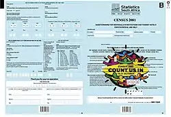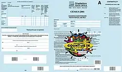 It was organised and planned by Statistics South Africa in terms of the Statistics Act from the beginning of 1999, under the commission of the Statistician-General Pali Lehohla. The enumeration primarily took place from 10 to 31 October 2001 and the results were published in 2003.[2]