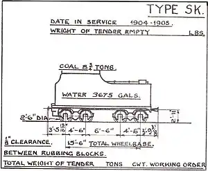 Type SK tenders were rebuilt from Type SH tenders which had entered service in 1904 and 1905. The rebuilding resulted in a tender with a larger water tank and larger coal bunker.[1][2]