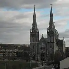 Construction of a larger church building on South Main St. began in 1906. By 1910 the basement was completed and the parish began to use it for services. completion was delayed for a time to accumulate the necessary funds and also due to the First World War.[4] According to Ruth Glasser, curator of the "In the Shadow of St. Anne's" exhibit at the Mattatuck Museum, "This church was literally built on the nickels and dimes of its congregation."[5] The finished church was dedicated on December 17, 1922, dedicated by Bishop John J. Nilan, of the Diocese of Hartford Diocese.