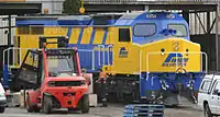 Having purchased a number of locomotives from FreightCorp and AN Tasrail, in 1995/96 Silverton Rail leased six locomotives to National Rail for use on Adelaide to Melbourne services as bankers to Tailem Bend.[6][7] With the introduction of an open access regime in New South Wales the business was rebranded as Silverton Rail, and in August 1999 began operating iron ore services from Cobar to Narromine as a subcontractor to National Rail and relocated the majority of its fleet to Parkes Roundhouse.[8][9] In August 1999, it also began operating trip workings in Sydney.[10] In August 2000, Silverton began operating grain services from Nyngan to Sydney.[11]