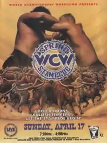 The professional wrestling matches at Spring Stampede involved professional wrestlers performing as characters in scripted events pre-determined[1] by the hosting promotion, WCW. Storylines between the characters played out on WCW's television programs, Saturday Night, WorldWide, Pro and Main Event.
