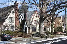 Between 1900 and 1940, the village of Addisleigh Park was developed by a handful of eminent white entrepreneurs including Edwin H. Brown, Gerald C. English, and Alexander Rodman.[35] Restrictive covenants were established to prohibit the sale of any of its properties to blacks.[36] A 1926 New York Times article insists, "Addisleigh, together with the St. Albans Golf Club, was laid out under the personal direction of Edwin H. Brown, and carries a land and house restriction of the highest type."[37] Two lawsuits were filed successfully by white residents who accused their neighbors of breaking the contractual segregation imposed on the neighborhood by its developers. Simeon Bankoff, Executive Director of the New York Historic Districts Council, says about this backlash, "It was unpleasant, as it was a case of a number of narrow-minded neighbors trying to fight what they saw as an invasion of unwanted people in their area."[38] Affluent white New York City-based public figures moved into Addisleigh Park to experience the privacy of suburban seclusion. Addisleigh Park boasted well-kept rows of Tudor and Colonial homes. The neighborhood's close proximity to Manhattan allowed for quick and frequent commuting. During the Swing Era, Manhattan's 52nd Street served as the epicenter of Swing Era live entertainment and musical innovation. For this reason, many successful African American jazz musicians began to recognize Addisleigh Park as the newest suburban haven for wealthy, influential artists.