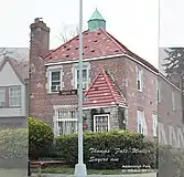 Bostic's neighbors on Murdock Avenue were Ella Fitzgerald and her then-husband, famous bassist and cellist Ray Brown. Fitzgerald owned her Addisleigh Park home from 1949 until 1956.[101] During the late 1930s and early 1940s, Fitzgerald had become one of the most recognizable names of wide-release swing music in the United States. She met Brown in 1946 while on tour with Dizzy Gillespie's band.[102] The couple divorced in 1952.[102] Between the years 1949 and 1956, Fitzgerald sang scat with various bebop bands. She was awarded the Presidential Medal of Freedom by President George H. W. Bush in 1992.[103]