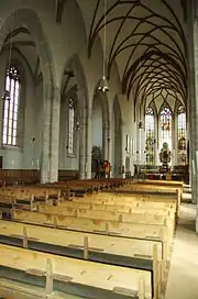 The organ was built in 1962 by the organ builder Rieger (Schwarzach, Austria), and restored in 1991 by the organ builder Mühleisen (Leonberg).[4] The church is a concert venue of the Bachwoche Ansbach, among others.