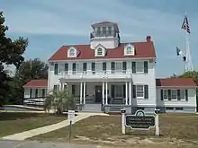 On April 8, 1942, World War II became a reality to residents of St. Simons Island, when a German U-boat sank two oil tankers in the middle of the night. The blasts shattered windows as far away as Brunswick, and unsubstantiated rumors spread about German soldiers landing on the beaches.[45] Security measures were tightened after the sinkings, and anti-submarine patrols from Glynco Naval Air Station in Brunswick ultimately ended the U-boat threat. During the war, McKinnon Airport became Naval Air Station St. Simons, home to the Navy Radar Training School.[46] The King and Prince Hotel, built in 1941, was used as a training facility and radar station. It was listed on the U.S. National Register of Historic Places in 2005.[47]