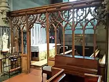 The organ is by Hill with work by Rothwell and Nicholson. A specification of the organ can be found on the National Pipe Organ Register