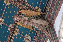The parish church of Southwold is dedicated to St Edmund, and is considered to be one of Suffolk's finest.[2] It lies under one continuous roof, and was built over about 60 years from the 1430s to the 1490s; it replaced a smaller 13th-century church that was destroyed by fire. The earlier church dated from the time when Southwold was a small fishing hamlet adjacent to the larger Reydon. By the 15th century Southwold was an important town in its own right, and the church was rebuilt to match its power and wealth.