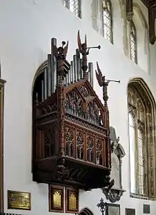 The church has a three manual pipe organ, originally built by J. W. Walker & Sons Ltd in 1887 and later rebuilt by the Thaxted firm Arnold, Williamson & Hyatt in 1966. The specification, drawn up by Sir Frederick Ouseley, a Professor of Music at Oxford University, may be found on the National Pipe Organ Register.[7]