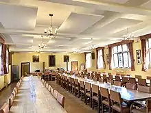 The Norfolk Building is the oldest building on site, dating back to 1896 as the former Ayerst Hostel; it provided accommodation for Fr Edmond Nolan, the first Master of St Edmund's, along with the first four students of the college.[13] Known for its clean Gothic revival style, the building underwent a three-phased extension scheme designed by the late Roderick Gradidge in 1989, and now houses 21st century amenities including the Middle Combination Room, Dining Hall, Kitchens and a Porter's office.[14]