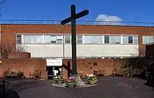 Outside, the Memorial Garden is dominated by a 16-foot oak cross, and provides a place of rest and refreshment for staff and passengers. The walls of the garden support memorial plaques for late members of the airport community. On the opposite side of the garden is the ground level multifaith prayer room opened in 1998.
